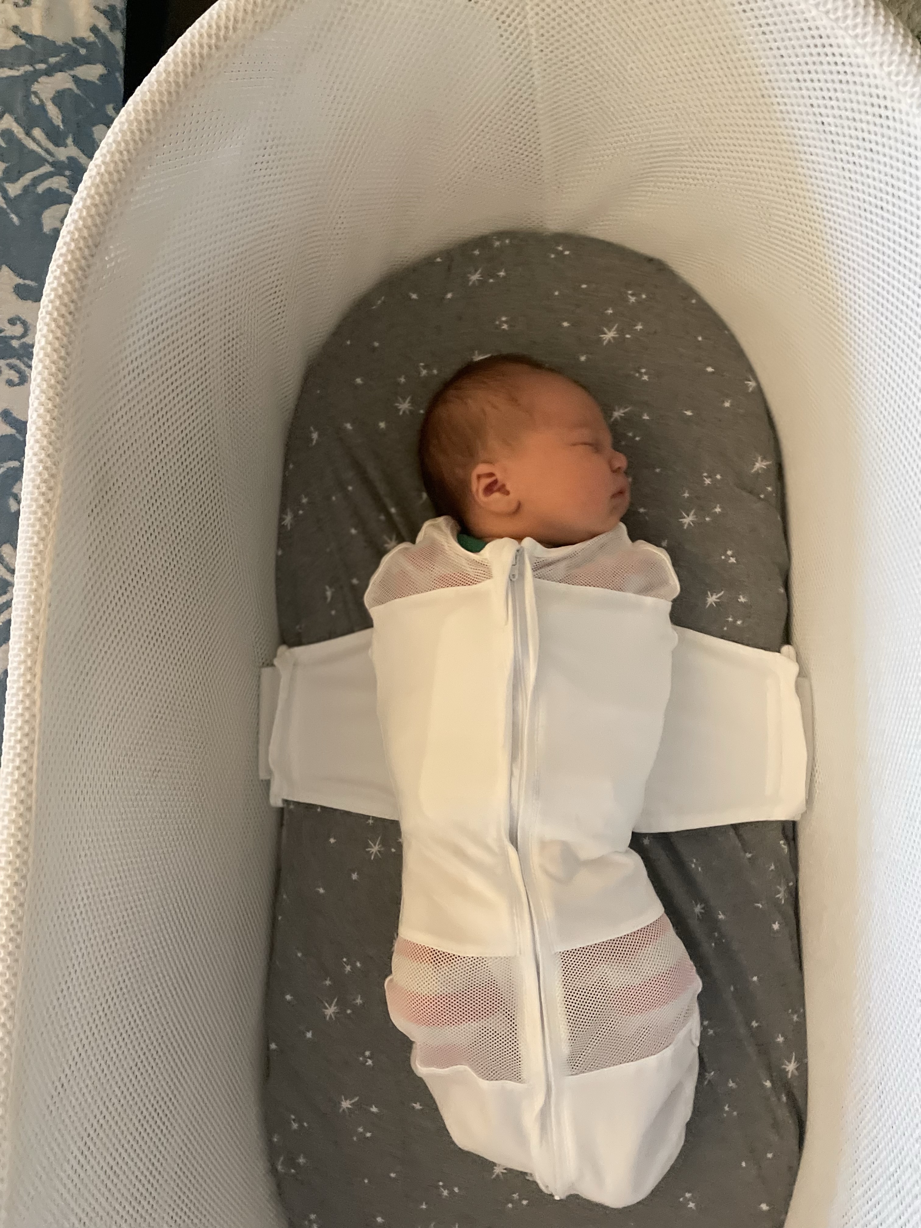 My first baby was incredibly chill and easygoing. We spent three nights in the hospital after some issues with jaundice and an unplanned C section, but ultimately came home and immediately started using The Snoo at night only. During the day he usually slept on one of our chests as we watched tv or just slept on the couch. I only put him down in The Snoo when I decided I needed a nap myself and I wanted a safe place for him to sleep.