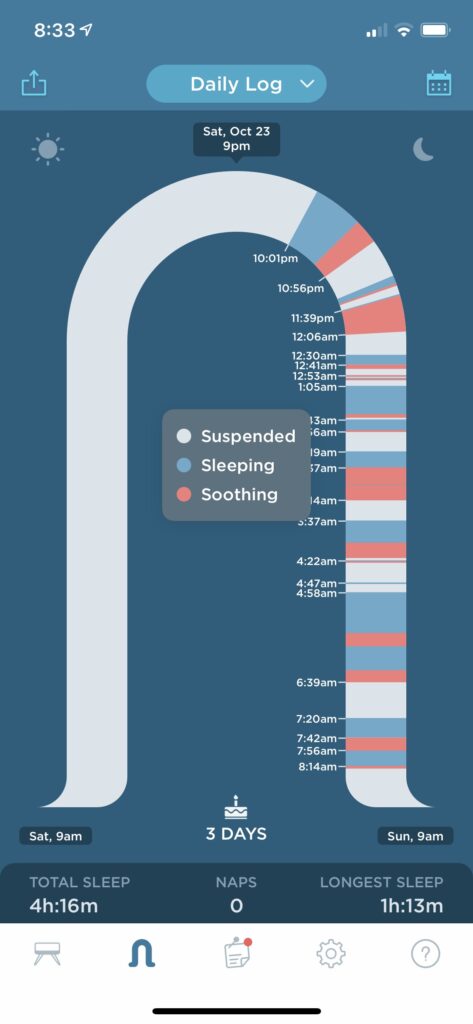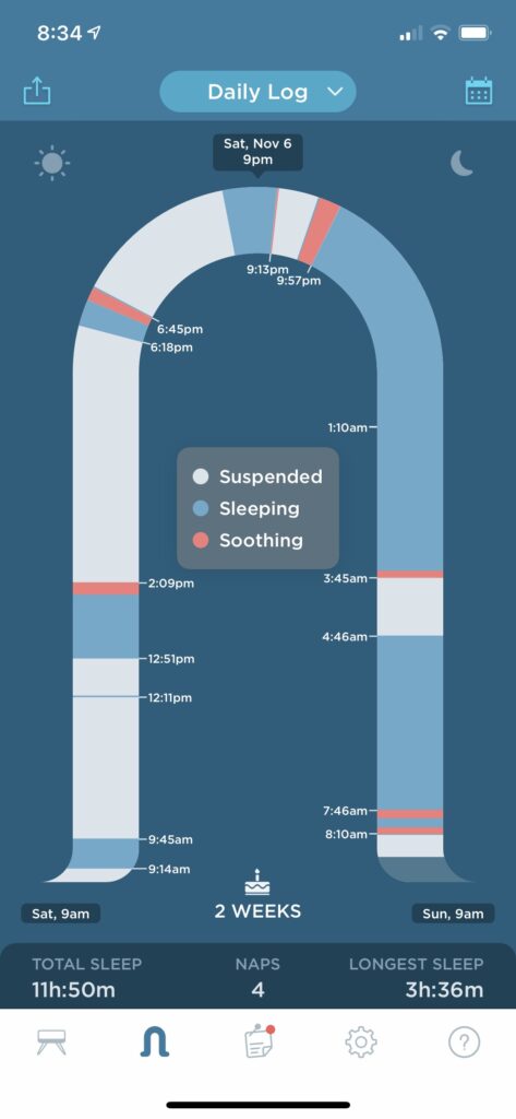 I think I took this screenshot below when I had accidentally slept through my alarm. Genuinely this log is so ridiculous for anybody’s baby sleep expectations and not normal for a two week old.