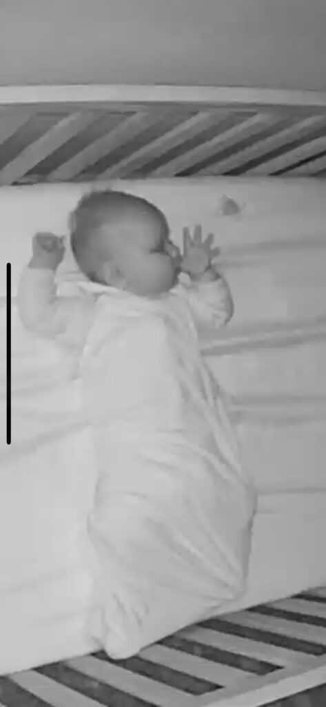 By four months old, we were really struggling with The Snoo with this little girl. Sometime between four and five months old, I decided it was time to put this girl in her crib. I did not do any weaning or slow transition, we just stopped cold turkey. She had a hard time for about ten minutes and eventually was able to fall asleep and stay asleep in her crib for the night. Things were much better after switching and really the best once she learned how to roll to her stomach. Baby number 2 is a stomach sleeper to this day and I wonder if she was ALSO trying to tell me she was a big enough girl to move around and roll to her stomach (like my pediatrician told me). This little one has slept great since I let her sleep on her stomach. Before she learned to roll to her stomach, she found her thumb and that certainly helped ALL of us.