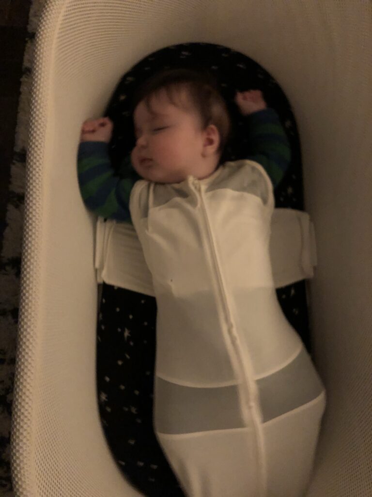 As mentioned previously, my son was very textbook when it came to sleep. I tried taking his arms out of the Snoo Sack around 4 months and that was a mistake. I quickly tucked them back in and tried again around 5.5 months. I pulled one arm out and once he was doing that well for a week, I pulled the other arm out. At this point, he was sleeping absolutely fine. In fact, one time I forgot to turn on The Snoo when I put him down and he slept absolutely fine throughout the night. Despite this, I still turned on the “weaning” feature on the Snoo for a week and let him sleep in our room in the Snoo with it completely off for a couple of nights before I put him in his crib for the first time. The weaning feature simply turns off the baseline motion from The Snoo and only provides motion if your baby cries out. To this day, my son is a great sleeper.